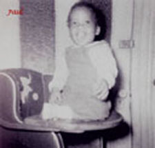Photo left shows James in a high chair (I have no idea what it is he's looking at). The photo at above right pictures him with his